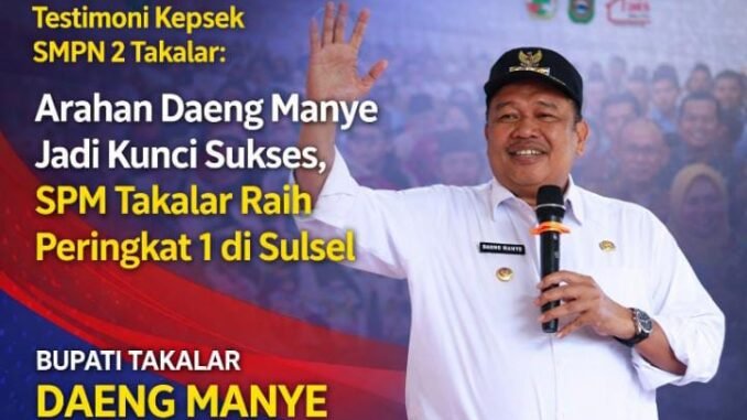 Nusantarapress.Com- TAKAKAR – Kepala UPT SMP Negeri 2 Takalar, Rusdianto, mengungkap rahasia keberhasilan Kabupaten Takalar meraih peringkat pertama capaian Standar Pelayanan Minimal (SPM) pendidikan di Provinsi Sulawesi Selatan.